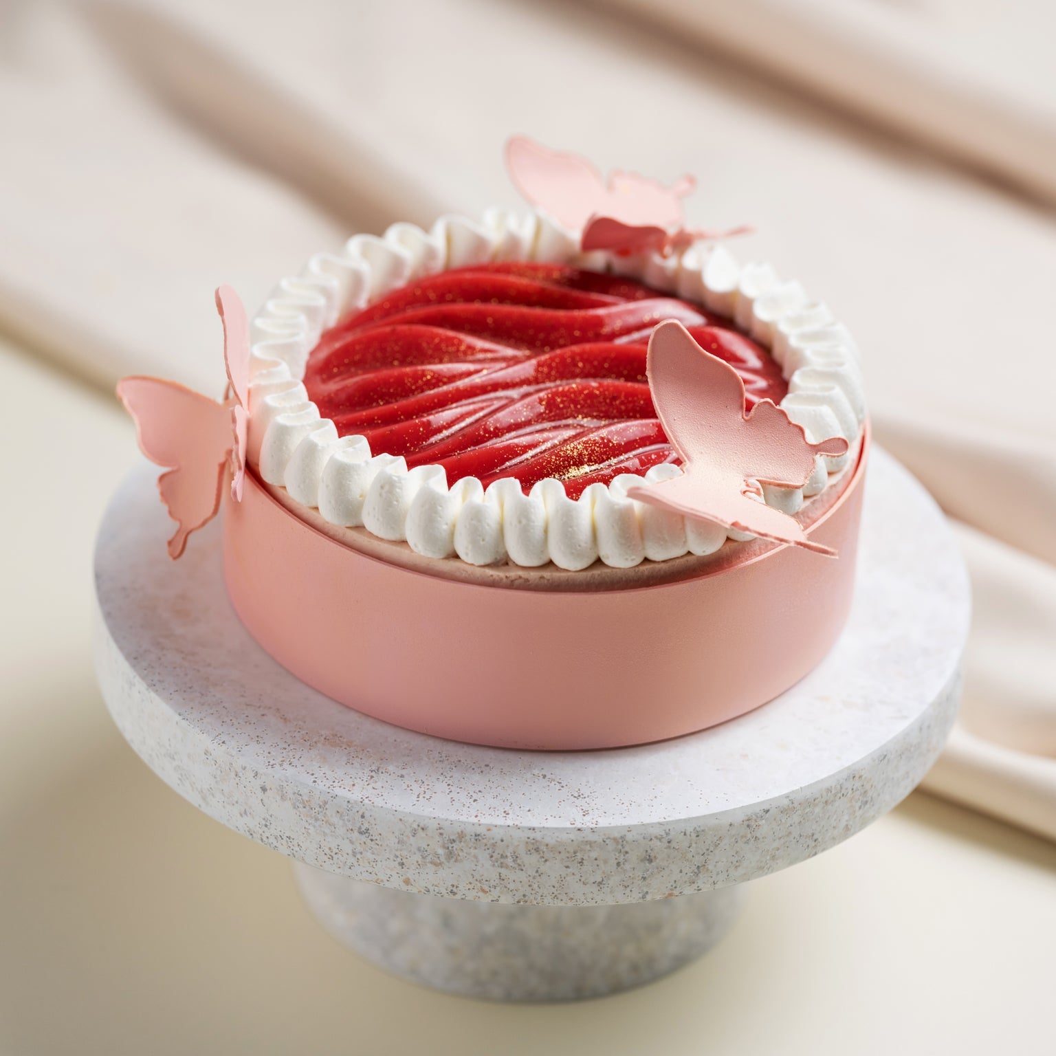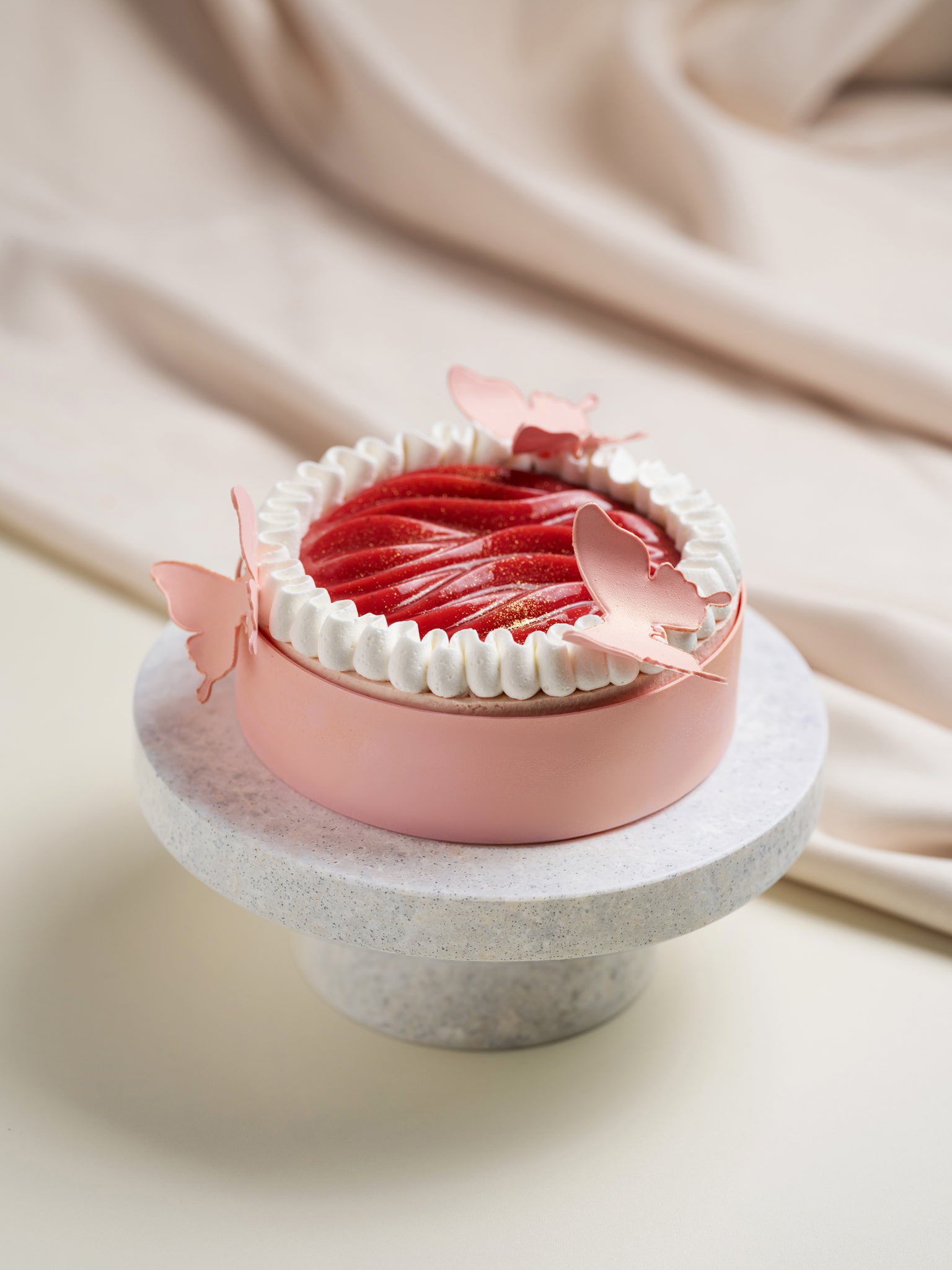 美式奶油乳酪蛋糕、草莓起司慕斯、草莓醬、香草奶霜、榛果脆餅